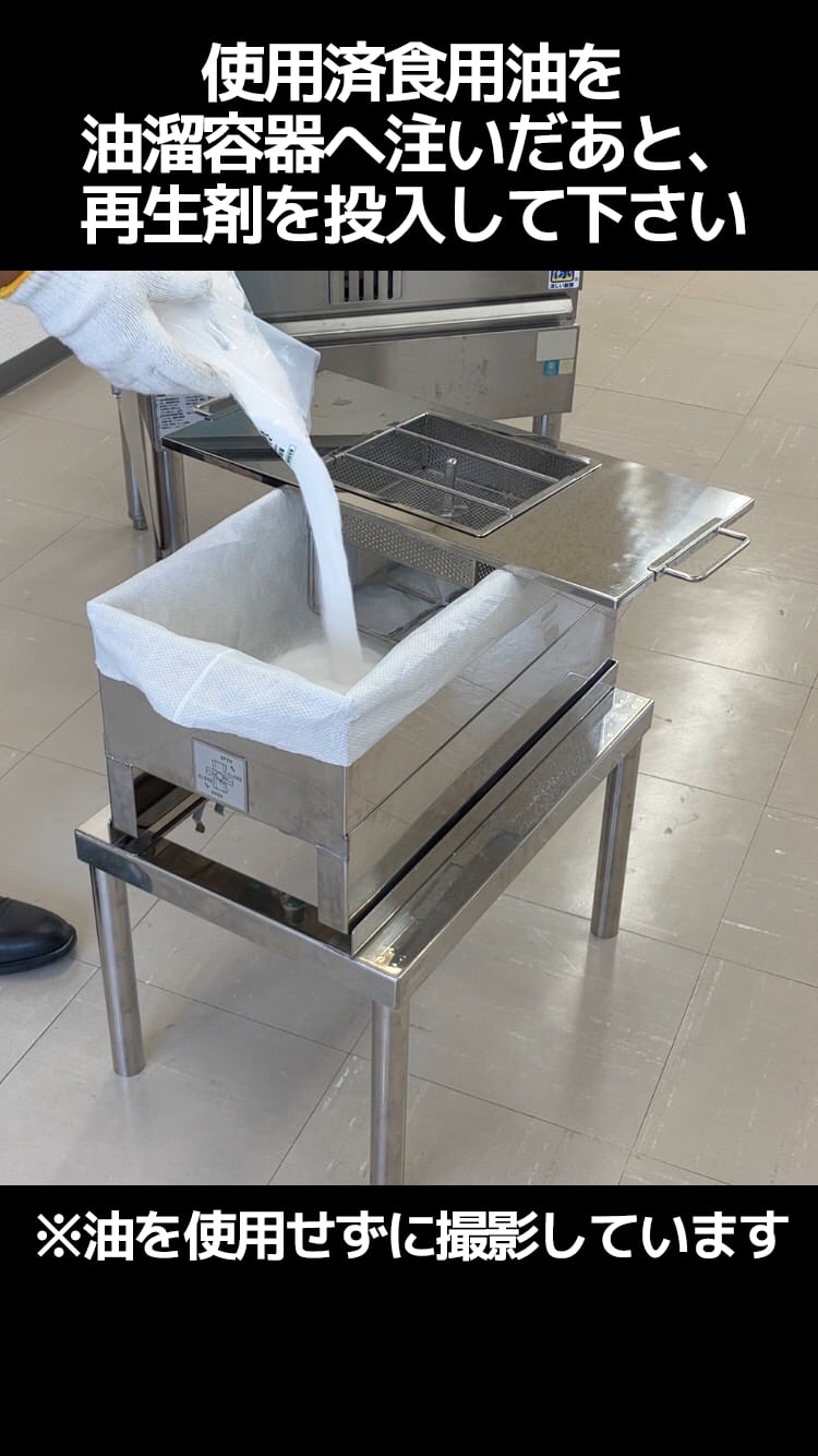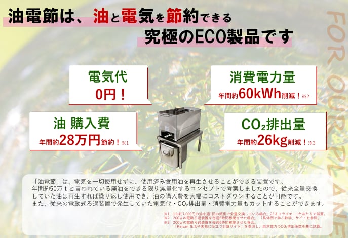 「油電節」は、電気を一切使用せずに、使用済の食用油を再生させることができます。