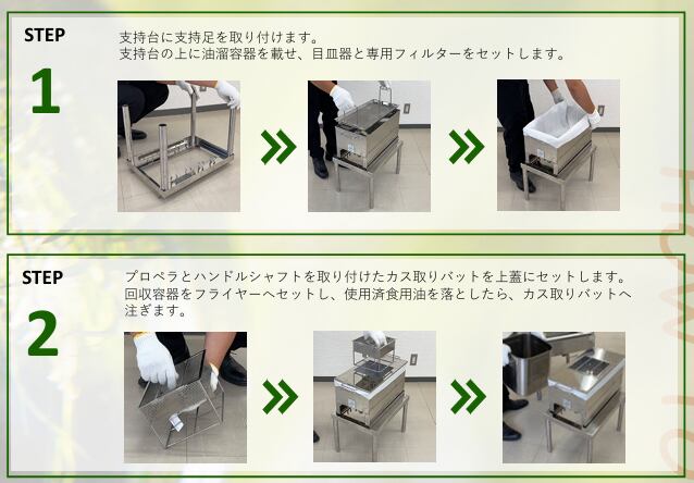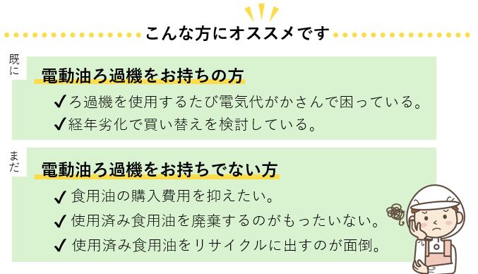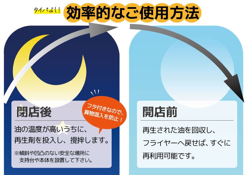 「油電節」は、電気を一切使用せずに、使用済の食用油を再生させることができます。