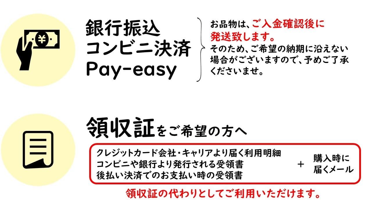 お品物は、ご入金確認後に発送致します。そのため、ご希望の納期に沿えない場合がございますので、予めご了承くださいませ。